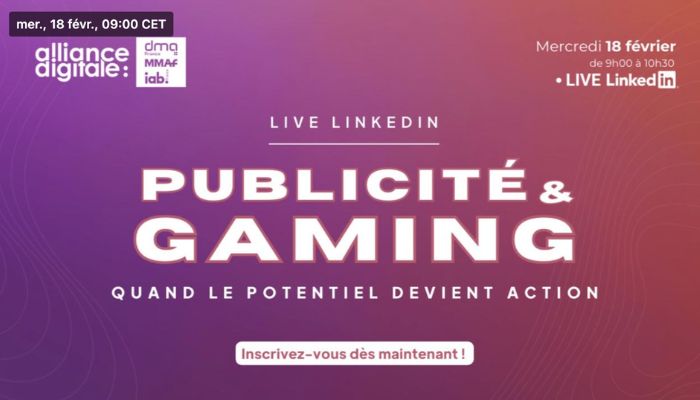 Live LinkedIn + présentation d’une étude sur la publicité in-game (perception & attention des joueurs) menée avec Harris Interactive (Toluna) et le groupe de travail eGaming. Au programme : présentation de l’étude, démos de formats in-game, table ronde “gaming & mix média”.
